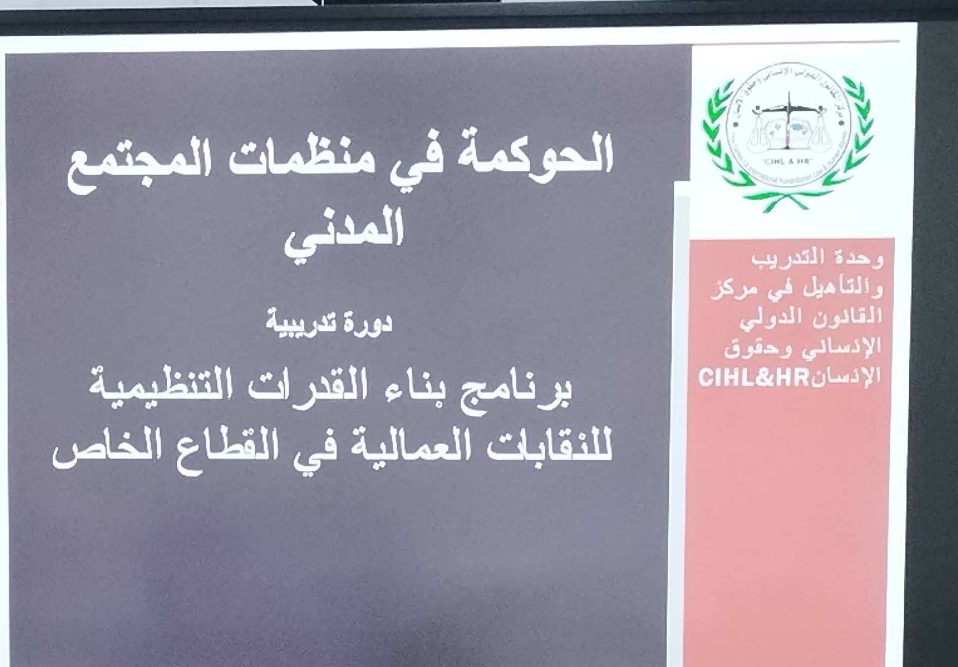 مركز القانون الدولي الانساني وحقوق الإنسان يدشن برنامج تدريبي حول حوكمة العمل النقابي وبناء القدرات للنقابات العمالية في القطاع الخاص